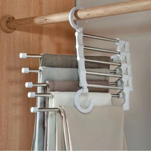 Não espere mais! Melhore a organização do seu guarda-roupa e poupe espaço com este fantástico cabide para calças com 5 compartimentos.