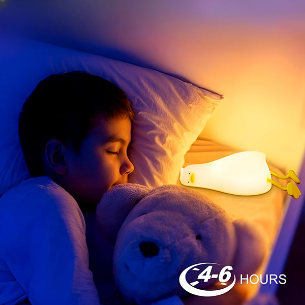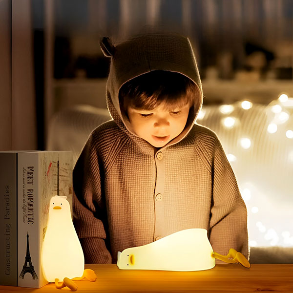 Este candeeiro em forma de pato emite uma luz delicada e relaxante, perfeita para criar uma atmosfera pacífica. Ajuda as crianças a adormecer facilmente e também pode ser usado como iluminação ambiente para adultos.