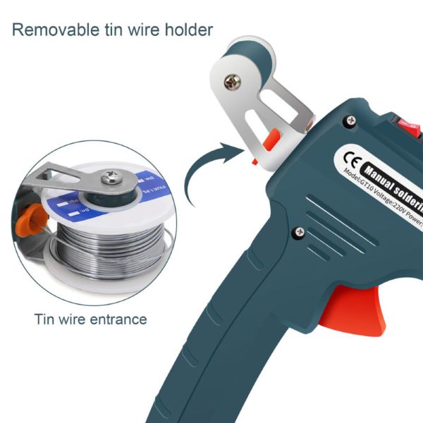 Pode ser usado com apenas uma mão, pelo que não precisa de voltar a apontar as mãos para o fio de estanho e para a pistola de estanho e não precisa de se preocupar em escaldar as mãos.