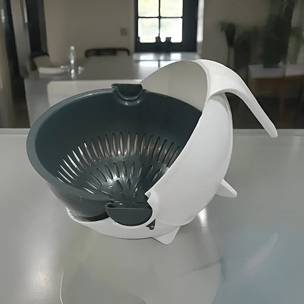 O cesto rotativo automático drena a água de forma rápida e eficiente, mantendo o seu espaço de trabalho seco e limpo. Esta funcionalidade é especialmente útil quando precisa de processar muitos vegetais ou frutas de uma só vez.