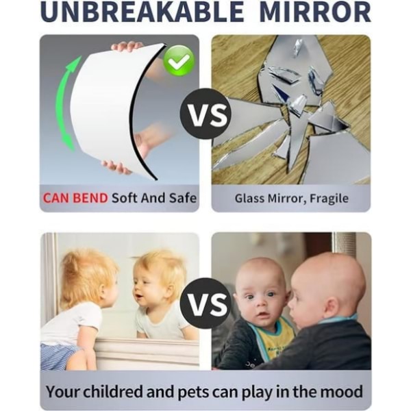 Fabricado em poliestireno, este espelho é seguro, flexível e não parte em estilhaços se cair.