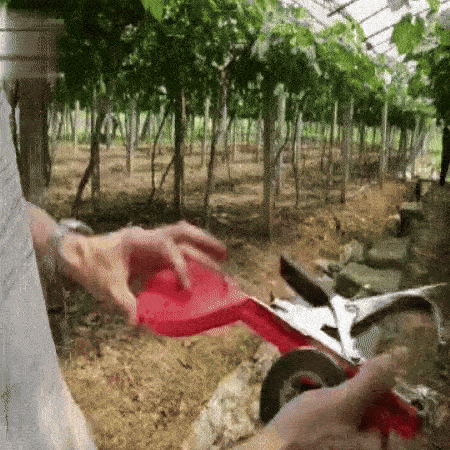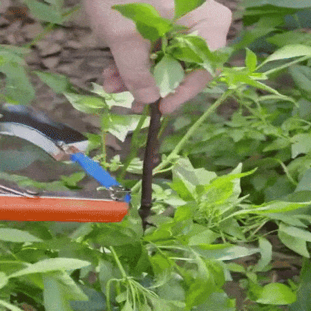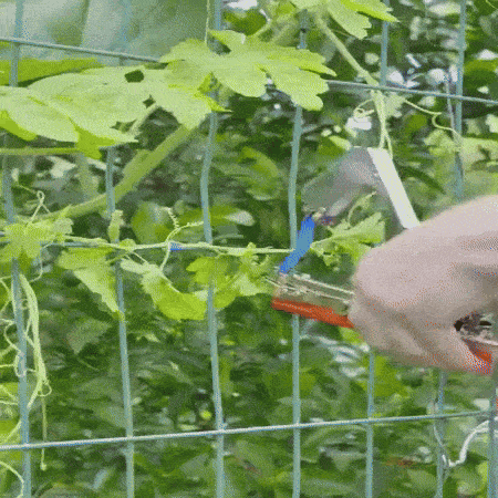 Basta empurrar a alça para esticar entre as pinças. A fita é então enrolada em volta da planta que você deseja amarrar. Empurre a alça novamente para apertar e cortar a fita. Muito fácil! – não se preocupe em danificar suas plantas, pois a fita e a máquina proporcionam uma aderência suave e firme.