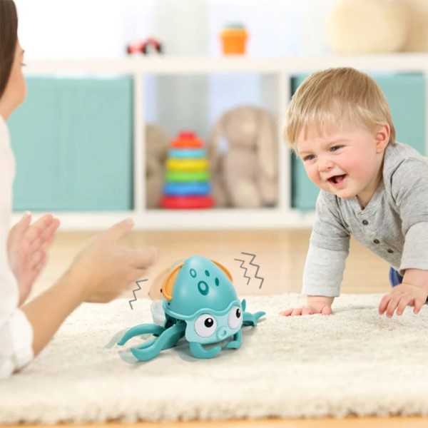 Ofereça ao seu filho o presente mais adorável, o CRAWLTOPUS – um brinquedo de polvo encantador com olhos grandes e amigáveis, uma boca redonda e oito pernas animadas. Tem um aspeto divertido e amável, tornando-se um companheiro de brincadeira delicioso para o seu filho. A sua música encantadora, luzes piscantes e movimentos fofos estimulam os sentidos do bebé e motivam-no a persegui-lo, tornando o tempo de brincadeira divertido e cativante.